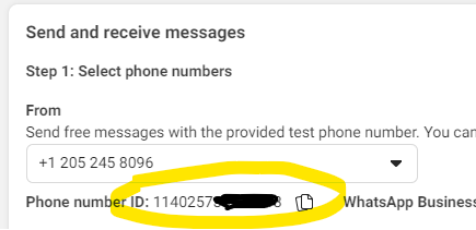 - Now go back to https://developers.facebook.com/apps - Select your app > Scroll to "WhatsApp", click the down arrow > "API Setup". Make a note of your phone number ID
