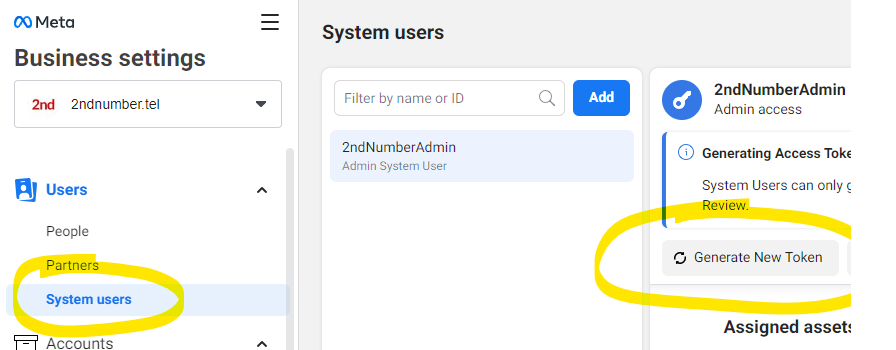 - Now go back to "System Users" on the left hand menu and tap "Generate New Token"