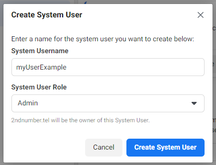 - On the left menu, select "Users" > "System Users". Click the Add button and you will get a pop-up window. Enter the user name and choose "admin" as the system user role.