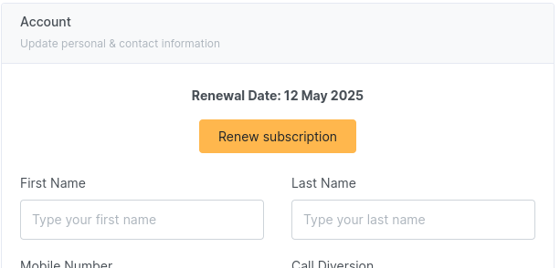 If you can't see the button, you'll instead see a renewal message telling you to check back after the renewal date. You will have up to 3 weeks to renew your number after the renewal date. So remember to check back then - we will also send an email to remind you.