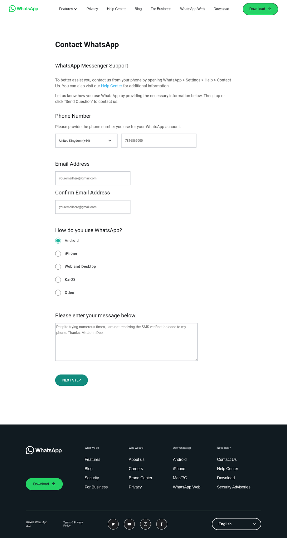 1. After trying the SMS and "Call Me" option on WhatsApp, if you are still not receiving the SMS or the phone call, go here: